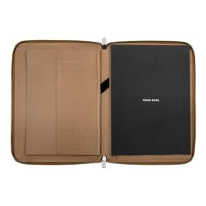 Ενσαρκώνει την κομψότητα και την διαχρονικότητα, ιδανικός για το ομώνυμο στυλό και όλα τα εργαλεία γραφής της συλλογής. Διακριτική Ματ υφή και κομψές χρωμιωμένες λεπτομέρειες προσφέρουν διακριτική πολυτέλεια. Φέρει διακριτική μεταλλική πλακέτα HUGO BOSS και φερμουάρ με χαραγμένο λογότυπο. Διατίθεται σε μεγέθη A4 και A5.