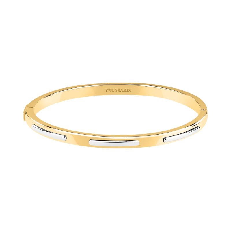Γυναικείο βραχιόλι Trussardi σε χρυσό τόνο με κομψές ασημί λεπτομέρειες. Διαχρονικό και εκλεπτυσμένο, αποτελεί ιδανική επιλογή για καθημερινές αλλά και πιο ιδιαίτερες εμφανίσεις.