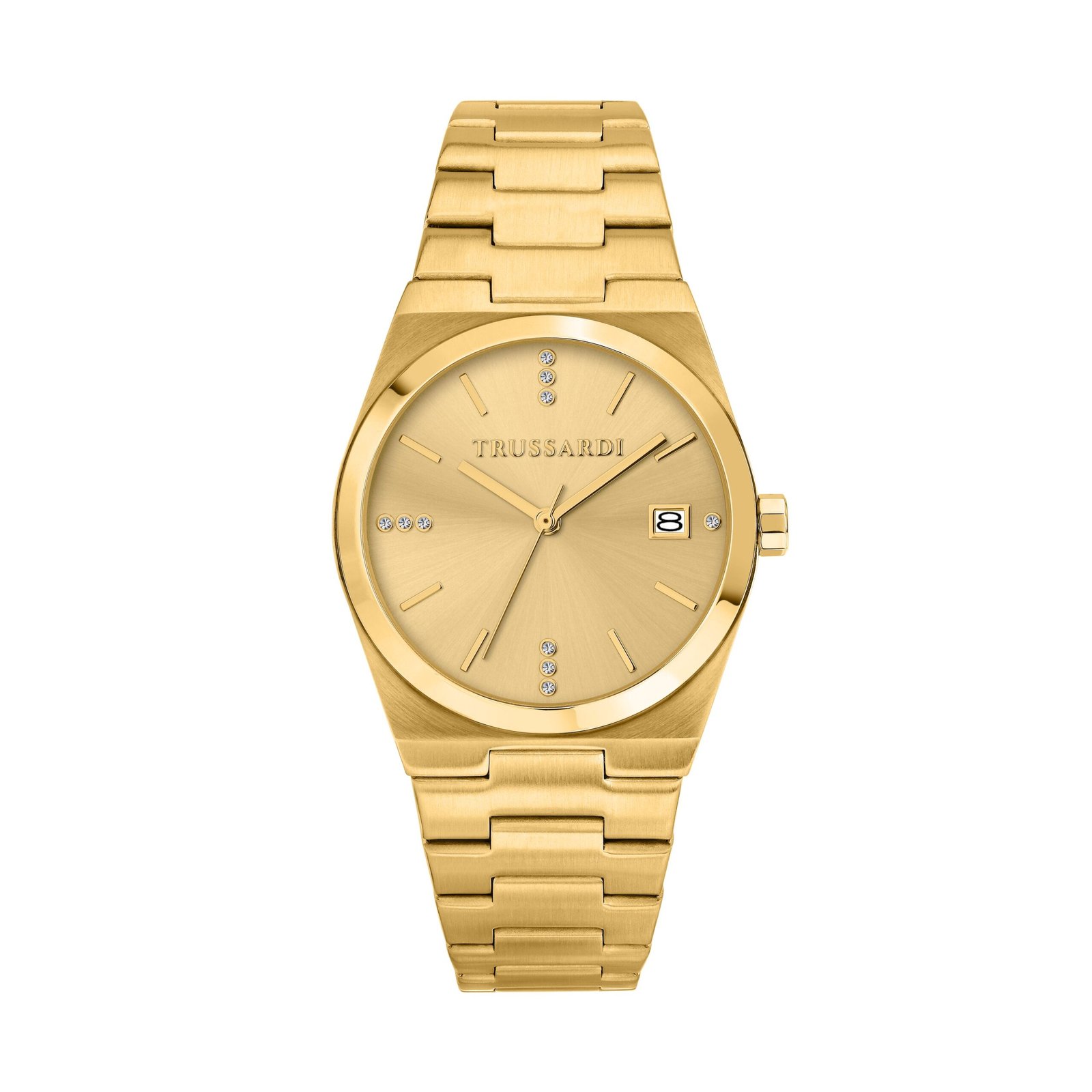 Αναδείξτε τη διαχρονική κομψότητα με το γυναικείο ρολόι Trussardi T-MILANO, με λαμπερό χρυσό καντράν και κομψή κάσα 34mm.